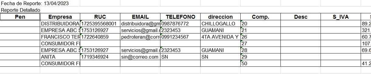 - El reporte se abrirá en un documento Excel