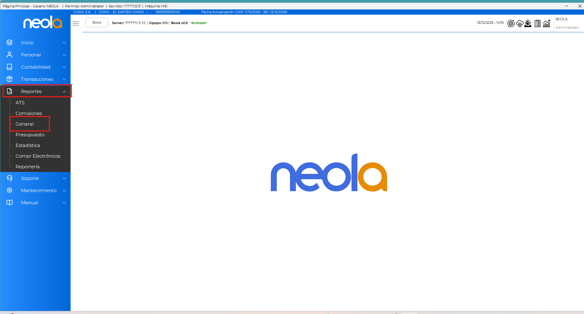 Dentro del sistema, dirígete a la sección Reportes y luego selecciona General.