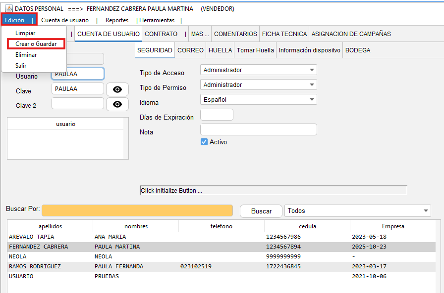 Crear nuevo personal y usuarios