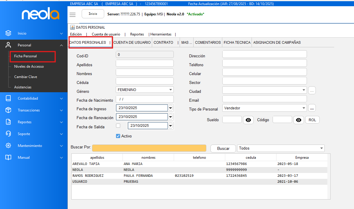 Ingresar al Módulo de Personal