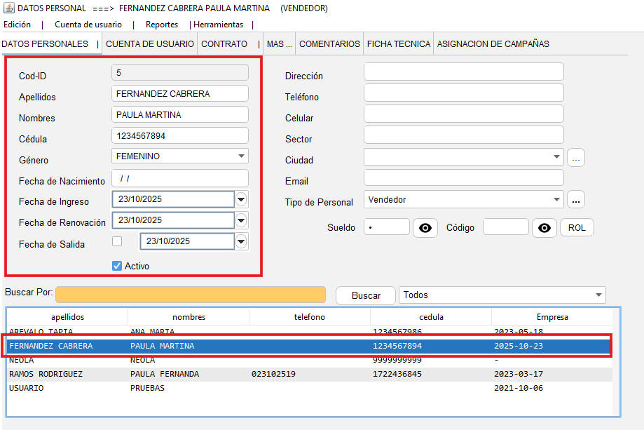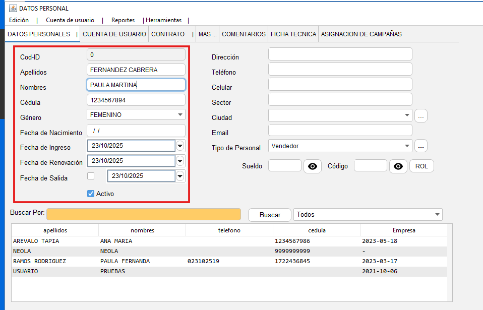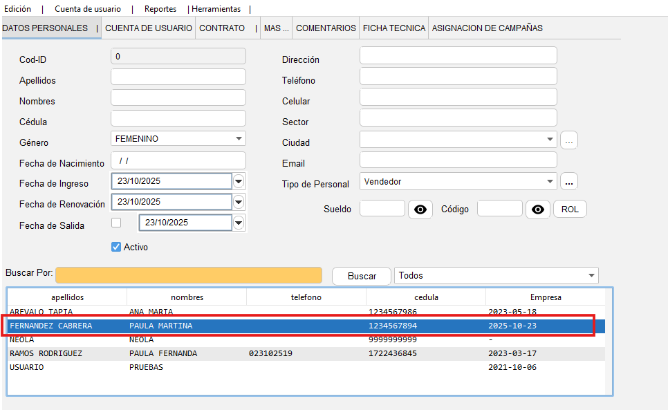 - En la parte inferior aparecerá el nuevo personal