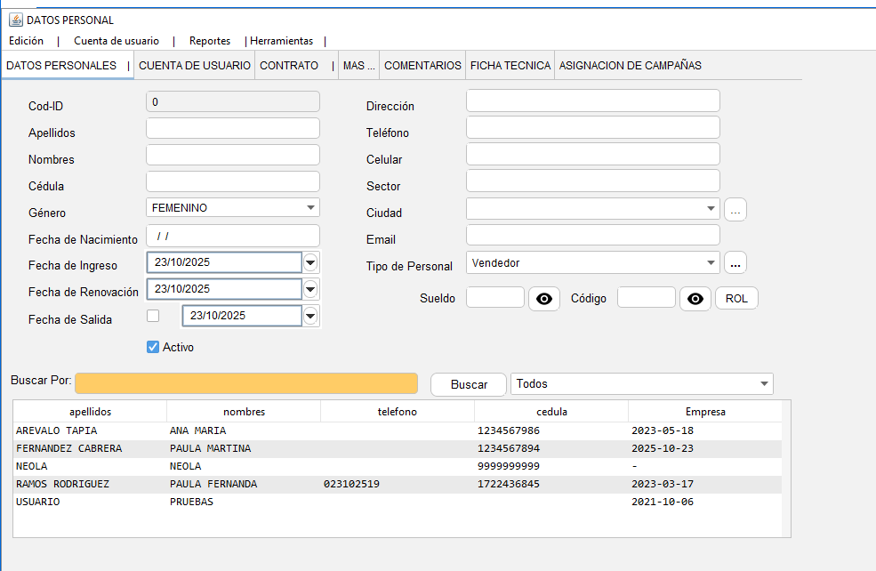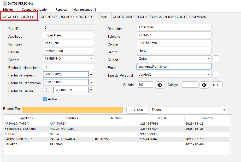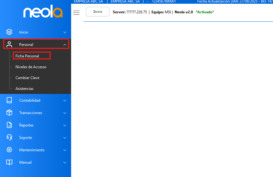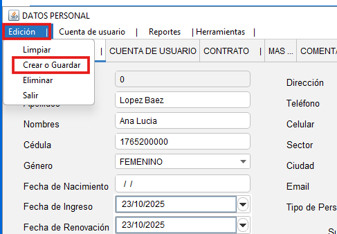 - En pantalla seleccione la opción Personal, Ficha Personal