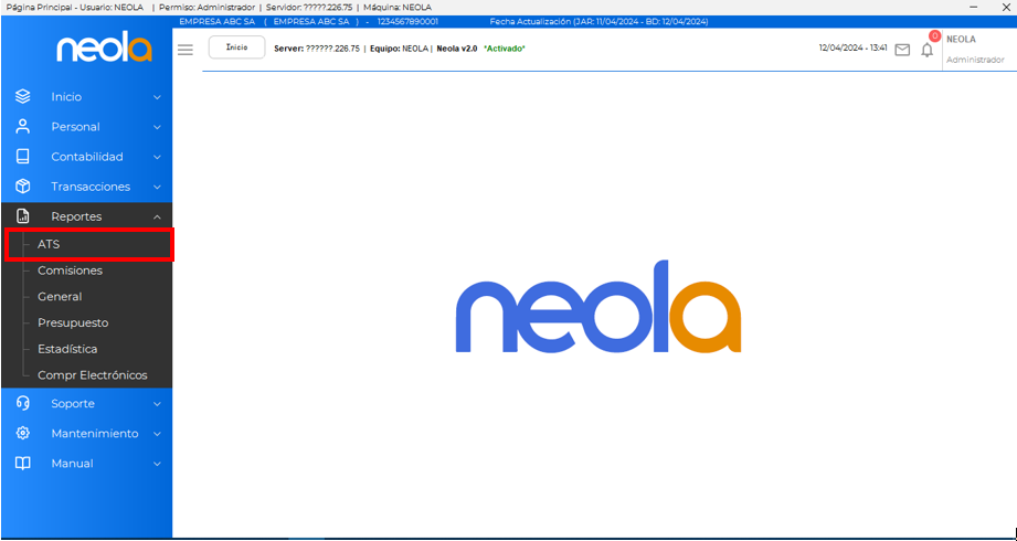 - Al ingresar a ATS se mostrará la siguiente pantalla.