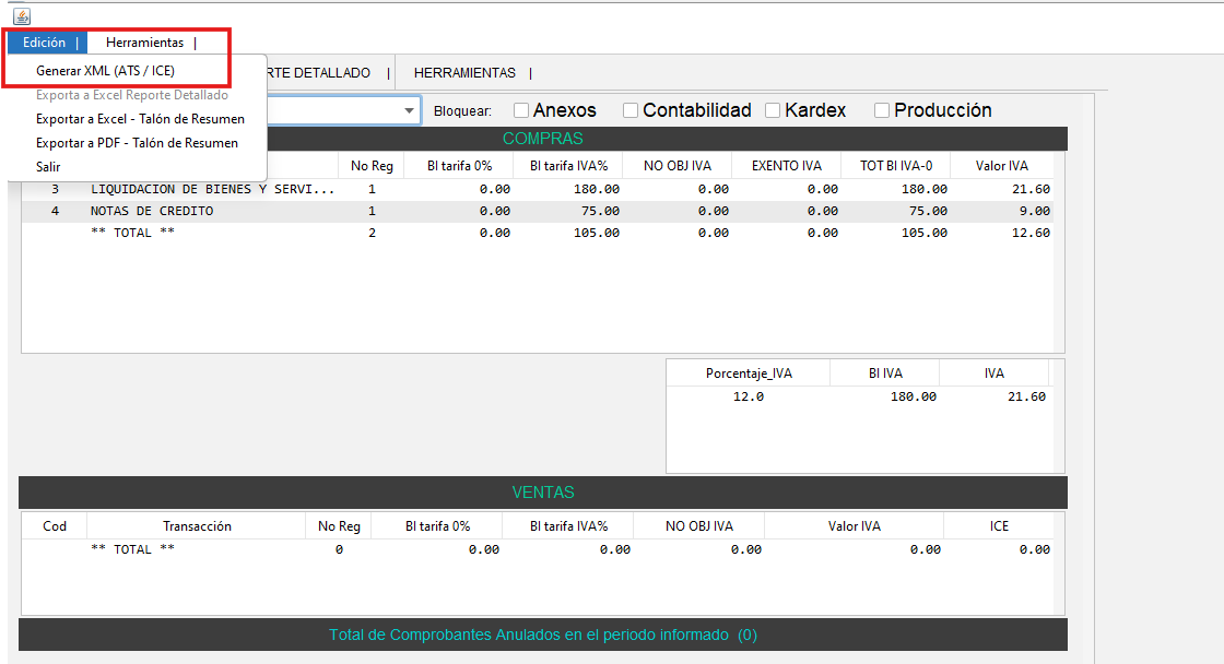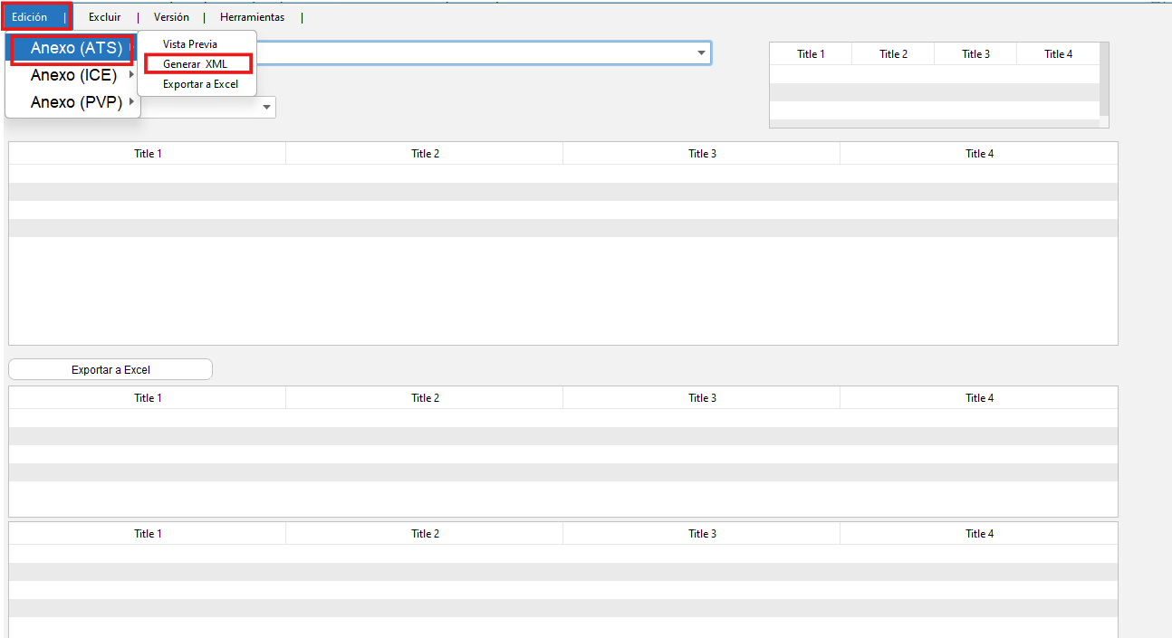 - De clic en el menú “Edición” y seleccione la opción “Generar XML ATS/ICE”.