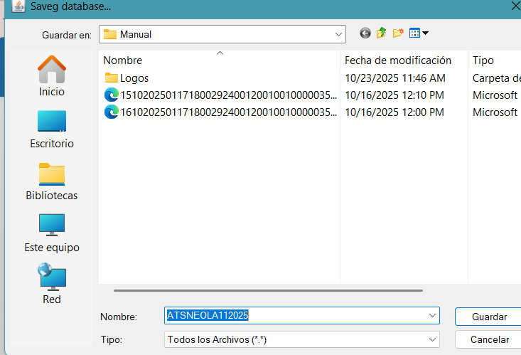 - Se mostrará una ventana del explorador de Windows en la cual podrá seleccionar la ubicación donde desea guardar el archivo generado.