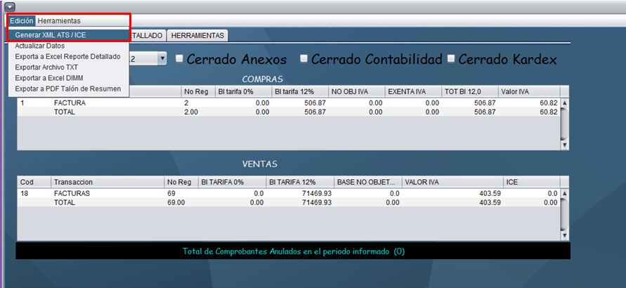 - De clic en el menú “Edición” y seleccione la opción “Generar XML ATS/ICE”.