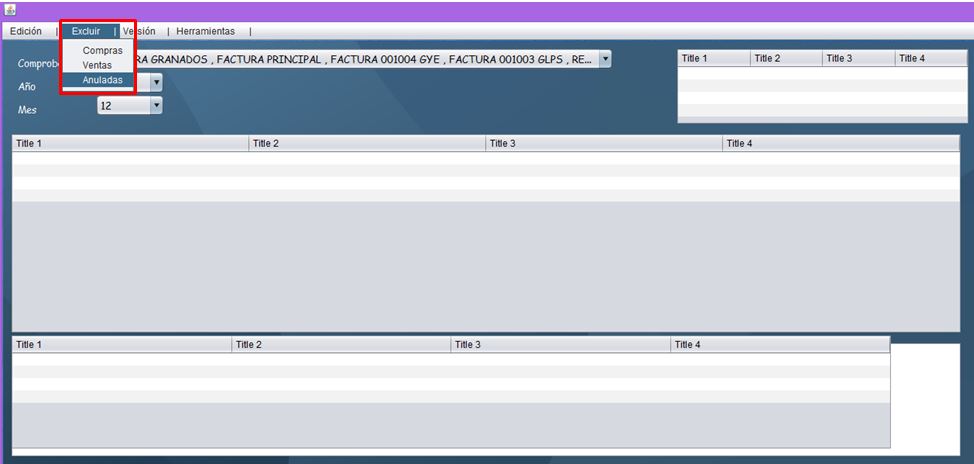 - En “Comprobantes” seleccione las ventas o compras según el serial que esté utilizando, una vez realizado este proceso damos clic en la opción “Excluir” y seleccione“Anuladas”.