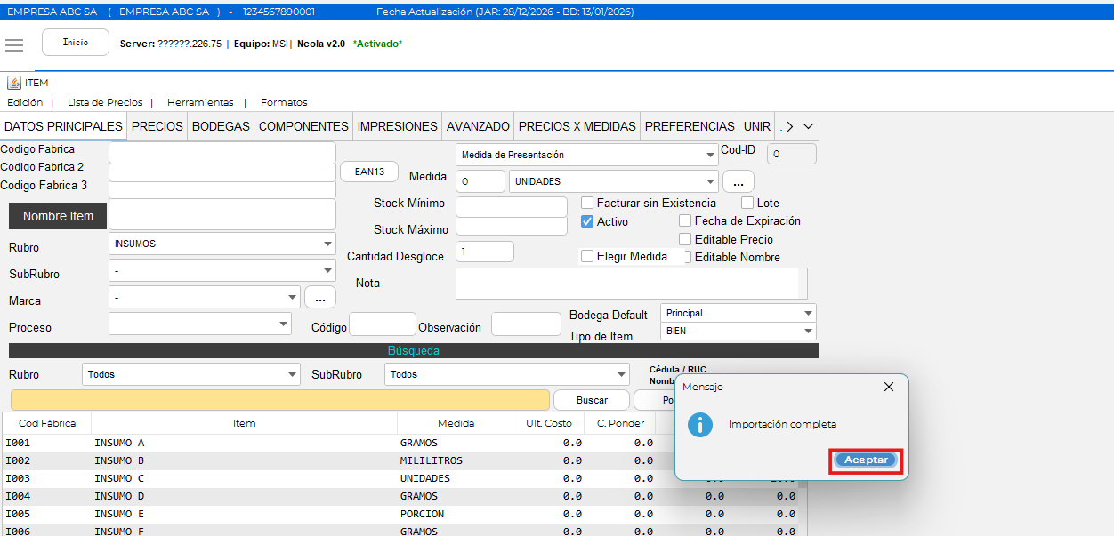 - Una vez finalizada el sistema le indicará con el siguiente mensaje y los precios se habrán actualizado.