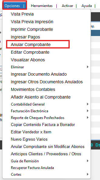 NOTA: El comprobante que se va a anular no debe registrar pagos