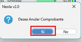 - Debes confirmar que deseas anular el comprobante, de clic en “SI”.