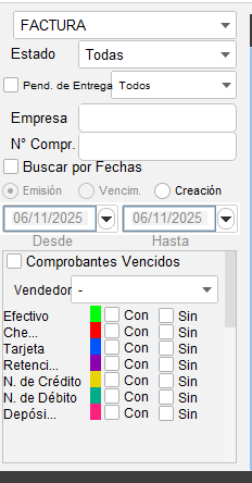 - Con la ayuda de los filtros ubicados en la parte lateral izquierda de la pantalla, busca el comprobante que deseas eliminar el pago.