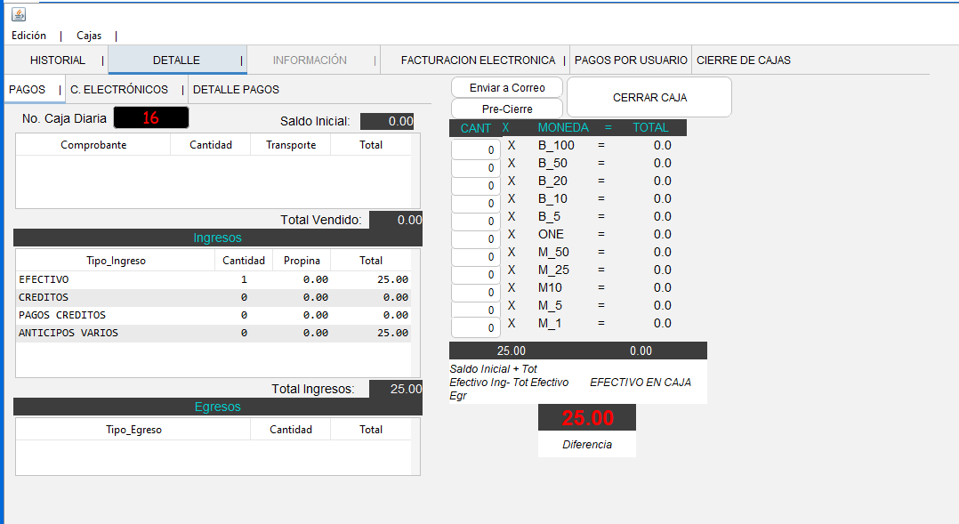 - Aparacerá la pantalla del módulo de caja