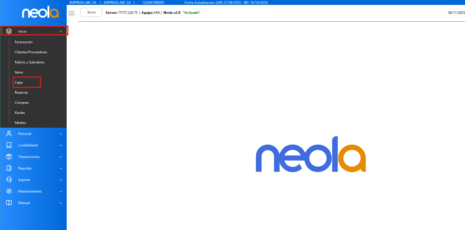 - Una vez en el menú principal, selecciona-> "Inicio" y luego selecciona el módulo de "Cajas"