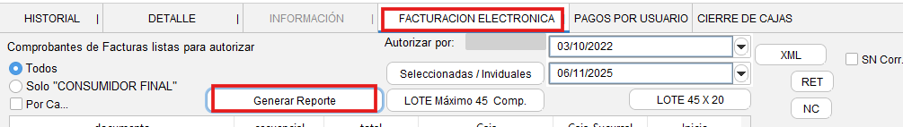 Autorización de facturas desde el módulo de caja