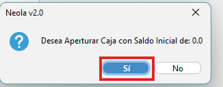 - Ingresa el saldo con el que desea abrir caja y clic en Aceptar