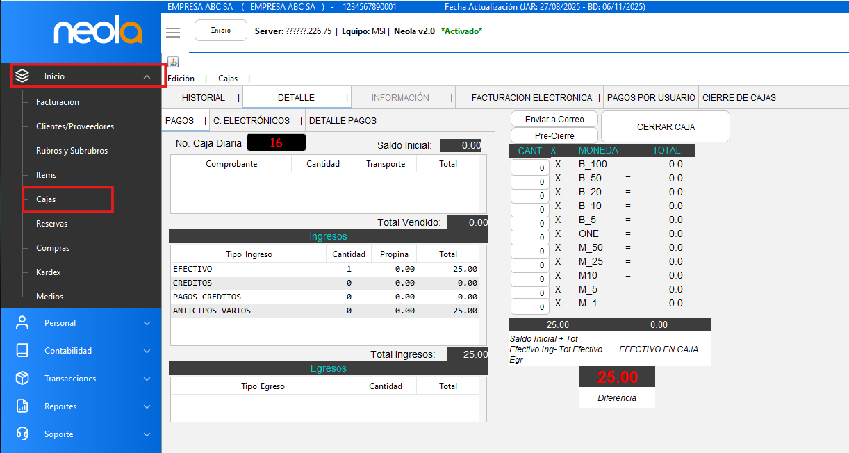 Apertura de Caja
