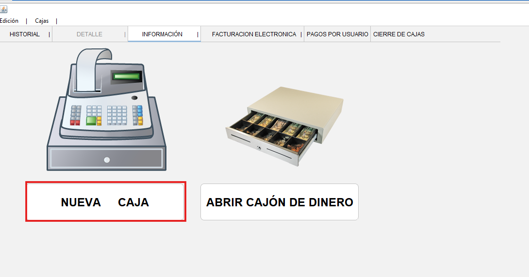- Selecciona la opción Nueva Caja
