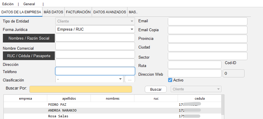 - Se mostrará una pantalla donde especifica datos de empresa que se deberá llenar con los campos necesarios del cliente.