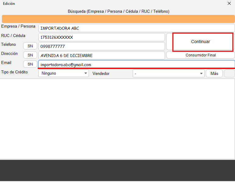 - Se mostrará la siguiente pantalla para crear un nuevo cliente. Ingresa los datos del cliente: nombre o empresa, cédula o ruc, etc.