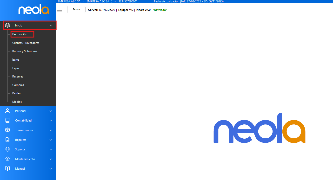 - Una vez en el menú principal, selecciona-> "Inicio" y luego la opción "Facturación"