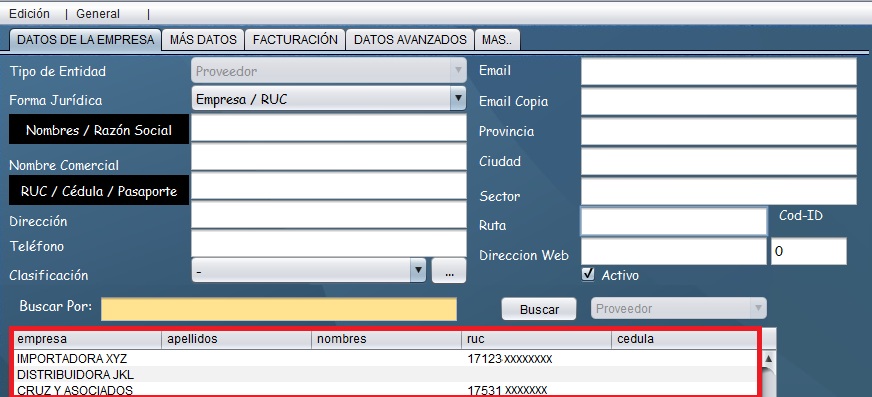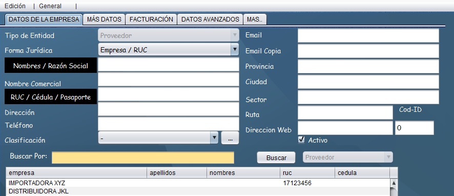 - Se mostrar谩 una pantalla donde especifica datos de empresa, la cual se deber谩 llenar con los campos necesarios del proveedor.