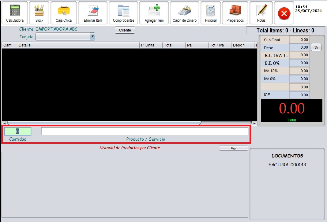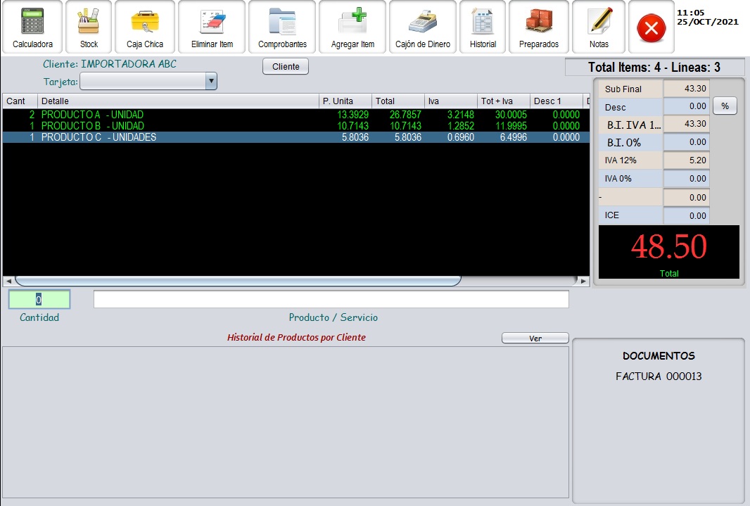 - Se mostrará la siguiente ventana donde debes ingresar los ítems a facturar con su respectiva cantidad.