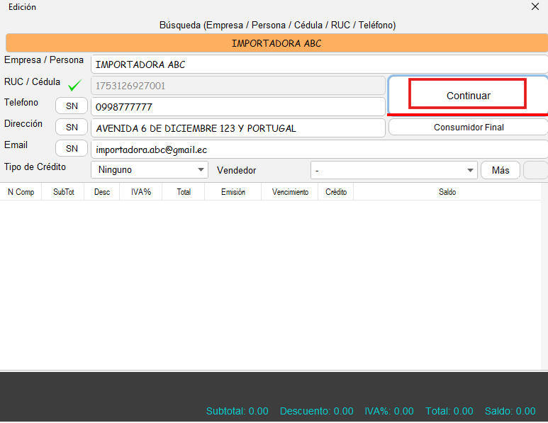 - Una vez seleccionado el cliente, presiona el botón "Continuar"