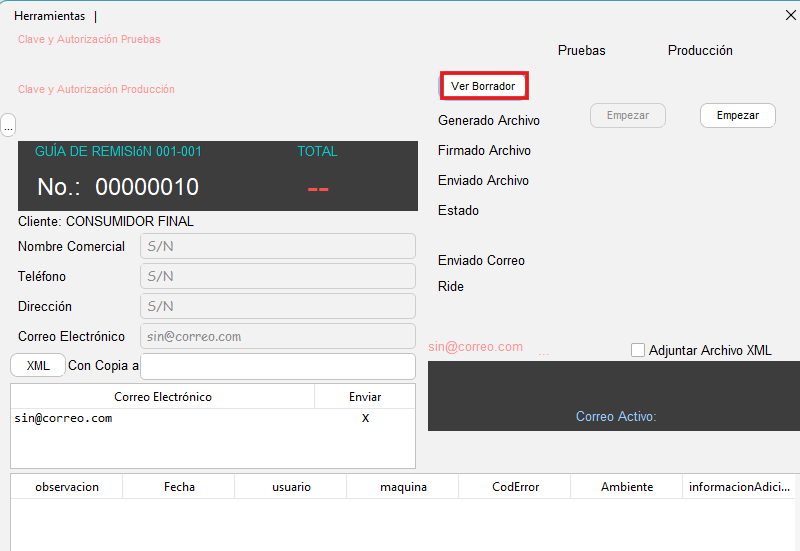 - Aparecerá la sigueinte pantalla para que puedas visualizar el borrador creado