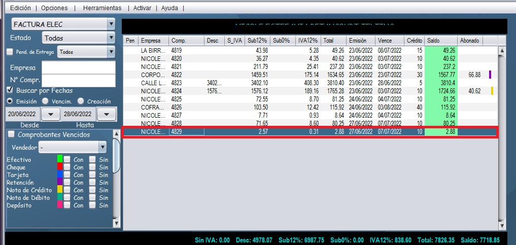 - Seleccione la factura que desea reenviar al correo del cliente.