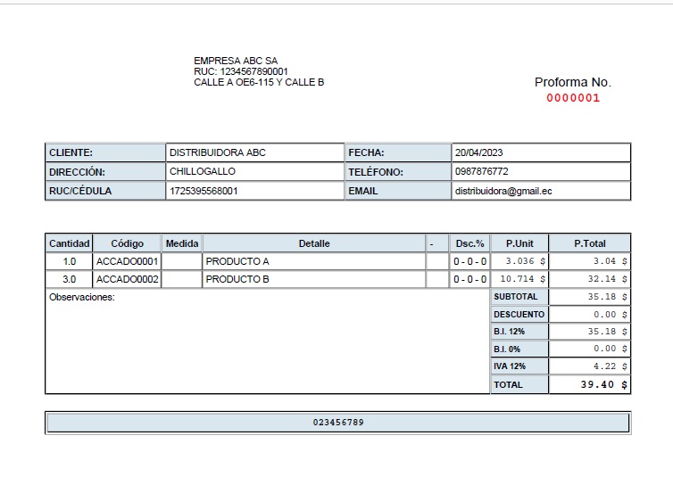 - Y listo, se abrirá el PDF con la proforma para que pueda enviarla a su cliente.