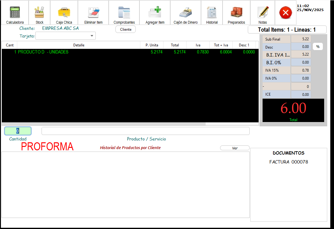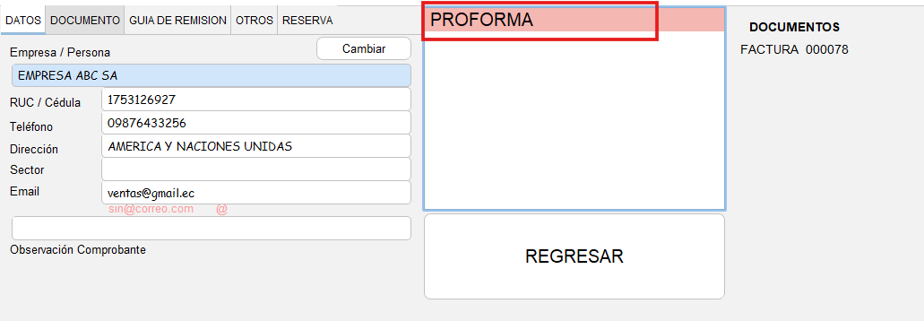 - En la parte inferior aparecerá el siguiente recuadro, haz doble clic en el botón rojo que indica "Proforma"