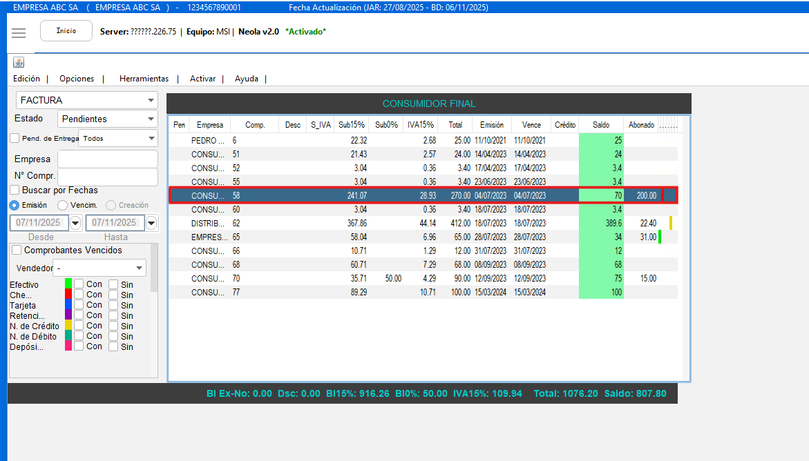 - Seleccione el comprobante que desea que se reimprima